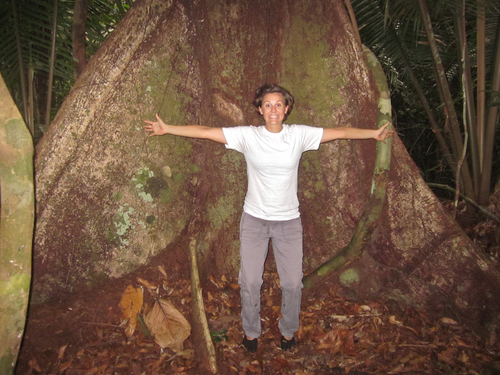 How big was the tree? It was this big! But not really, this was just the buttresses of the roots. It's a characteristic not of one specific kind of tree (that's what I had thought), but something that all of the trees in the area have picked up. The soil isn't very good there (okay, that's what the guide said. I can't imagine that a rainforest would grow in really crappy soil), so they spread their roots like this to stabilize.