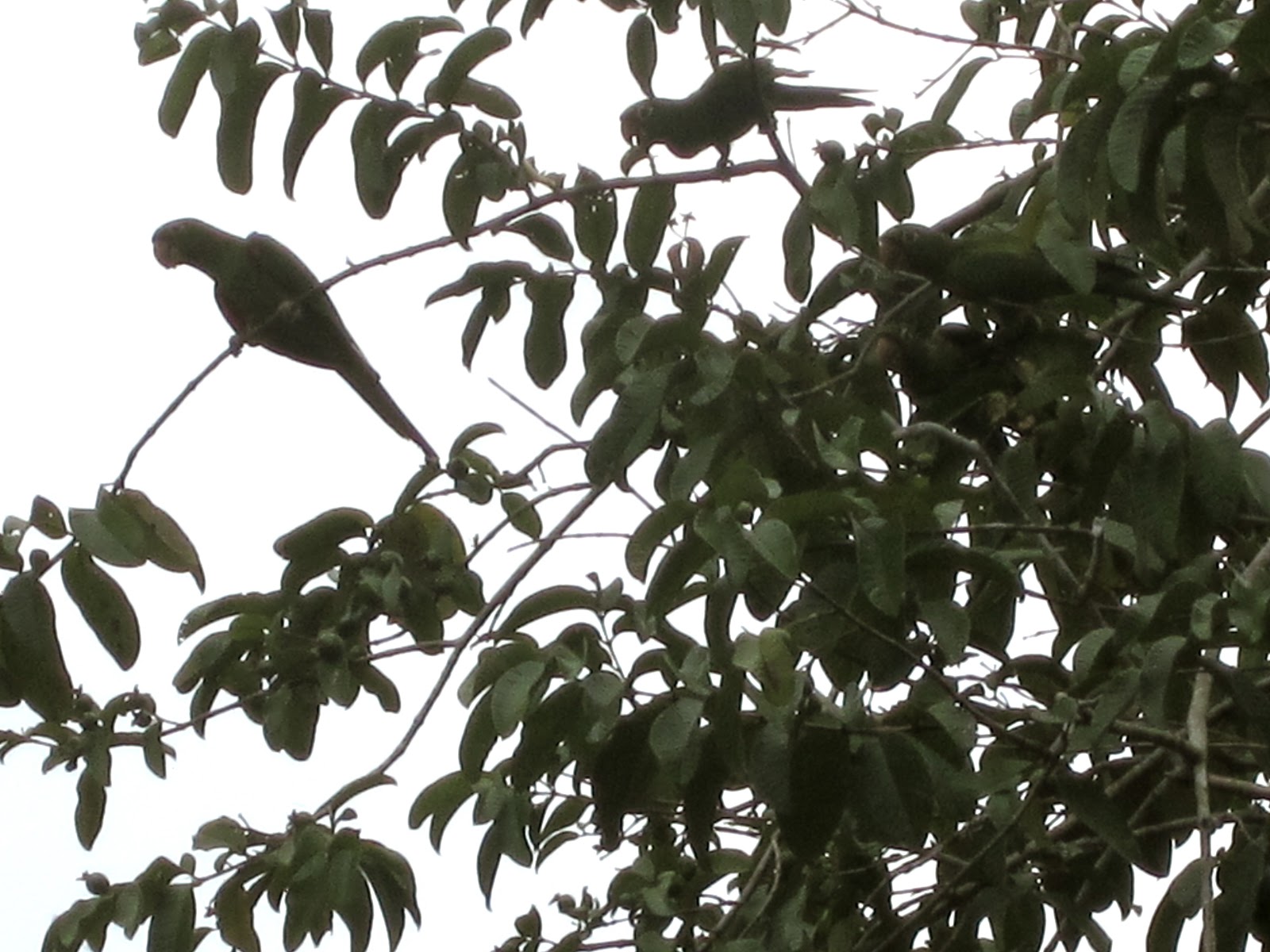 Growing up I had a pet bird, Ben. In a tree at the lodge there was a flock of green parrots living. They looked really close to ole Ben. Except no red head, Ben had red on his head, I believe these guys were all green. They're incredibly camouflaged. As I look at this photo I realized there are like 4 parrots that I can see. Can you find them all?